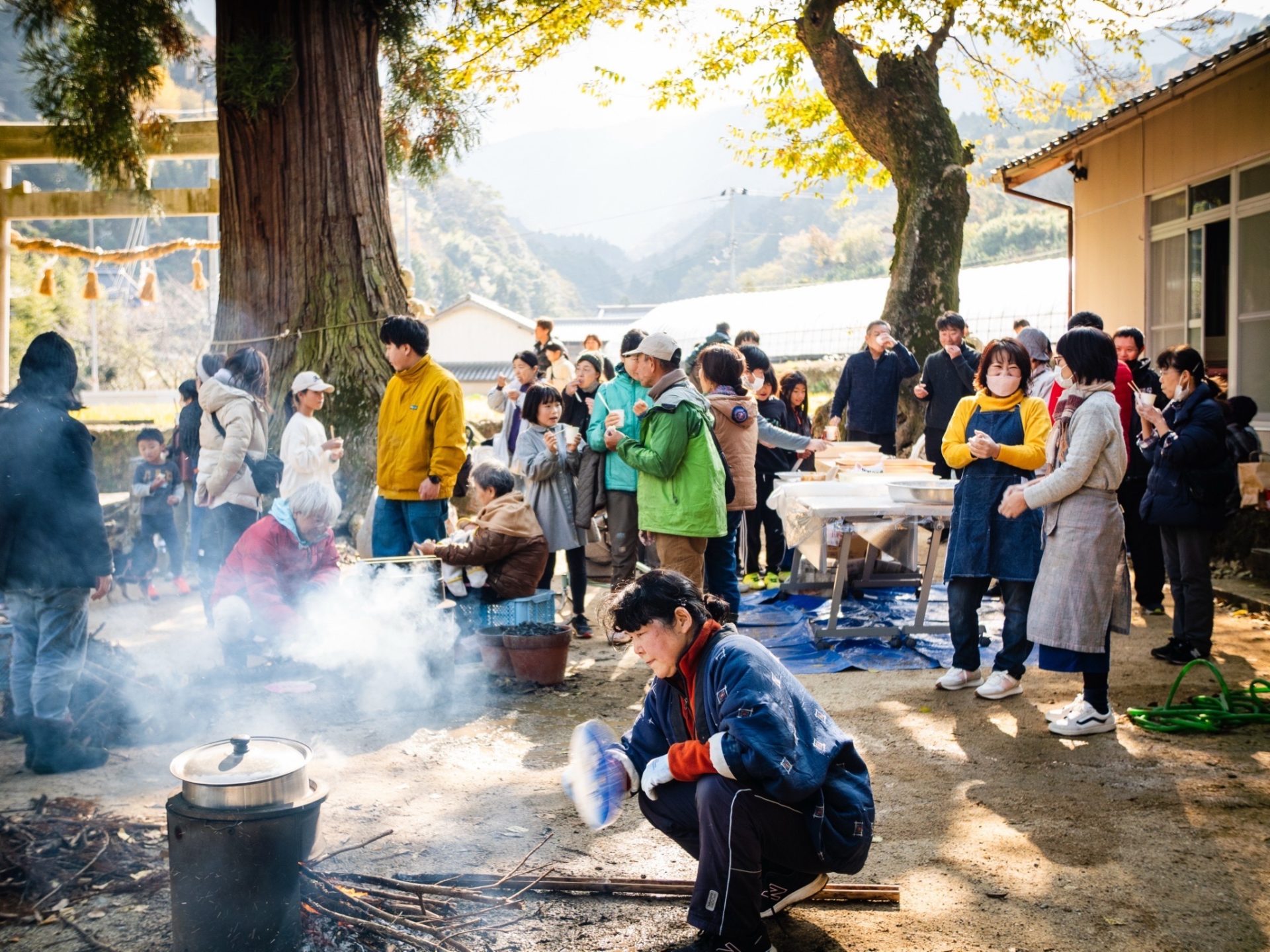 きなこやら砂糖醤油やら段取りするおなごしと、そう、これが防災訓練のあかし、羽釜を使うトレーニング!!