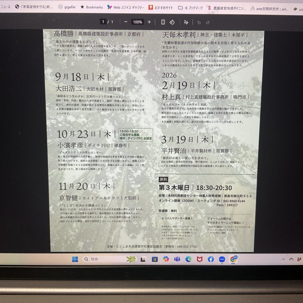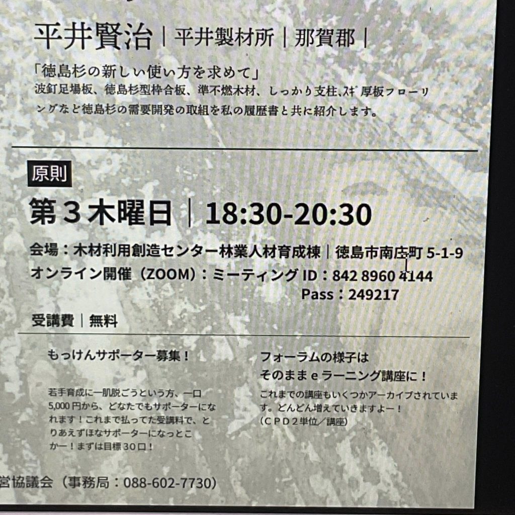 二回目のもっけんフォーラム。会場行きたいけど我慢してさななやで視聴。素晴らしいタイトル写真。県南の木材調達を支える大田さんの講義です。楽しみ!みなさんzoom で参加できるじょ。どこからでも(そらそうやけど笑)