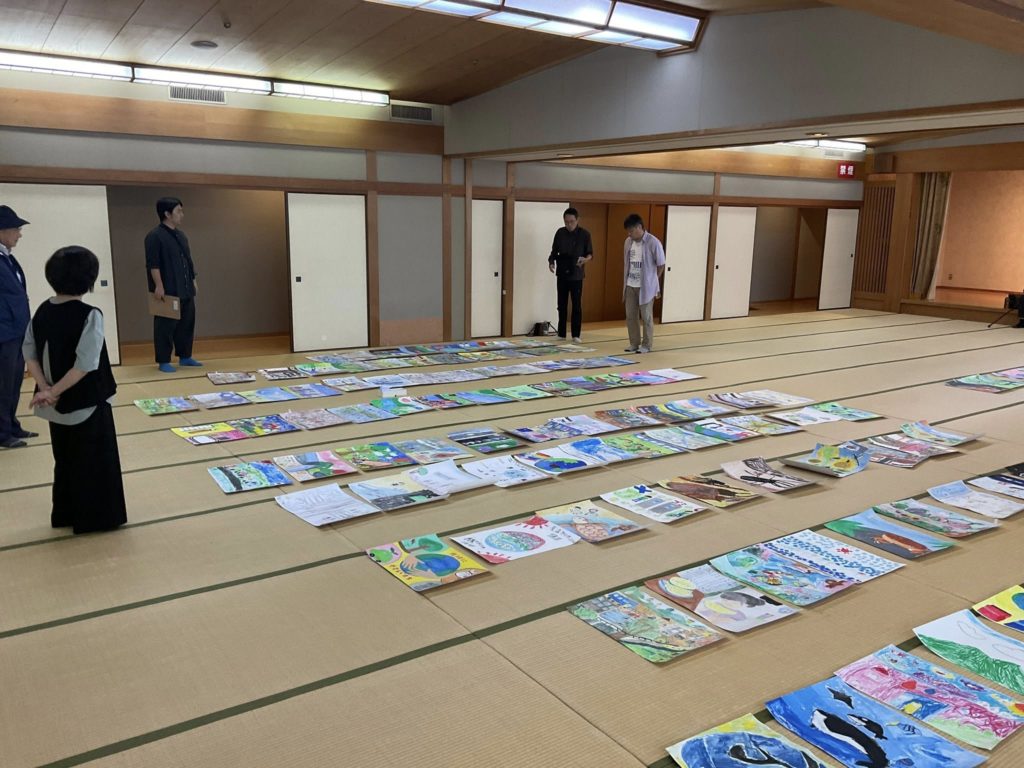 徳島県建築士事務所協会が毎年やってる小学生夏休み絵画コンクール。今年は家じゃなくて「こんなまちに住みたい!」審査会@あわぎんホール和室。低学年の子が描いたカニに見つめられて、人間としてドギマギしてしもた笑笑