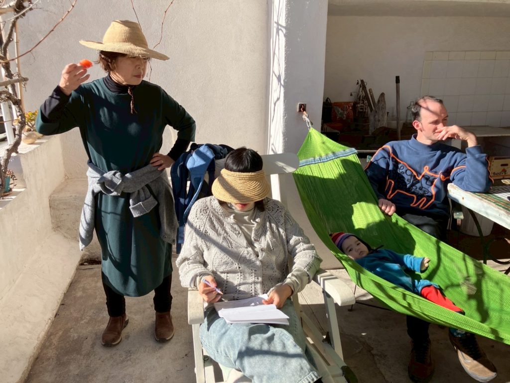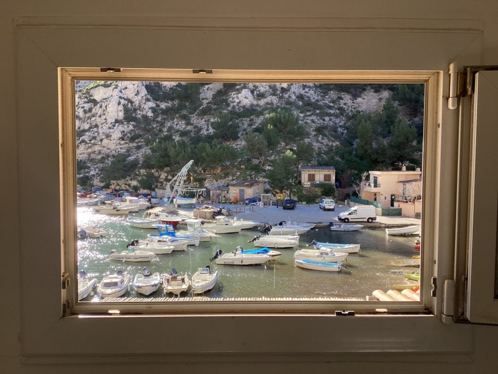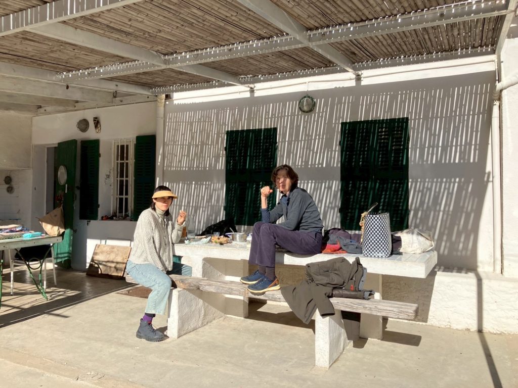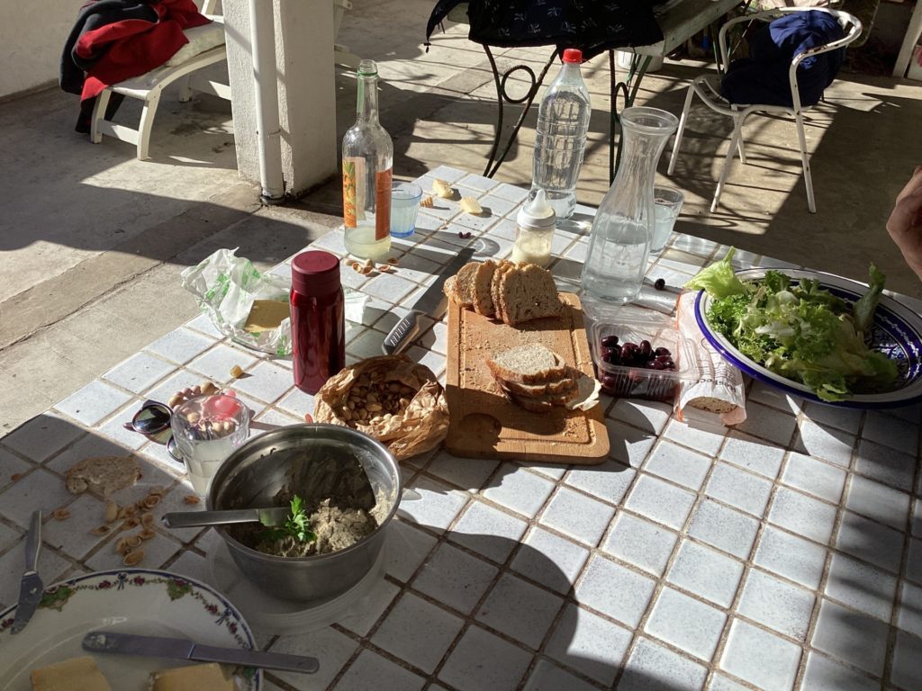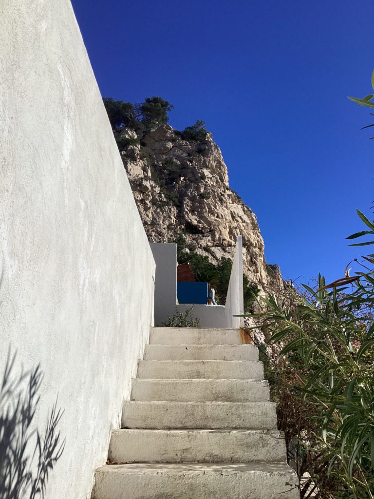 アニエスもレオも、昨日から明らかにたかぶっとるなあモルジウ行くとなって。アニエスはレオの産前、産後もここで過ごしたんやと。レオの、お医者さんしよったじいちゃんが調子に乗って(レオ談笑)買った別荘。その後に半島一帯が国定公園に指定されて、買った当時以上の観光地化はされないという、人口三十人のタイムカプセル的なところ。ゆっくり小さく寄せたり返したりの地中海が、陸地との境界線が呼吸してるみたいにたゆたゆしとる。なんか人の体の根源の部分と共鳴するみたいな気持ちよさ。人に還る、みたいな場所やなここは。