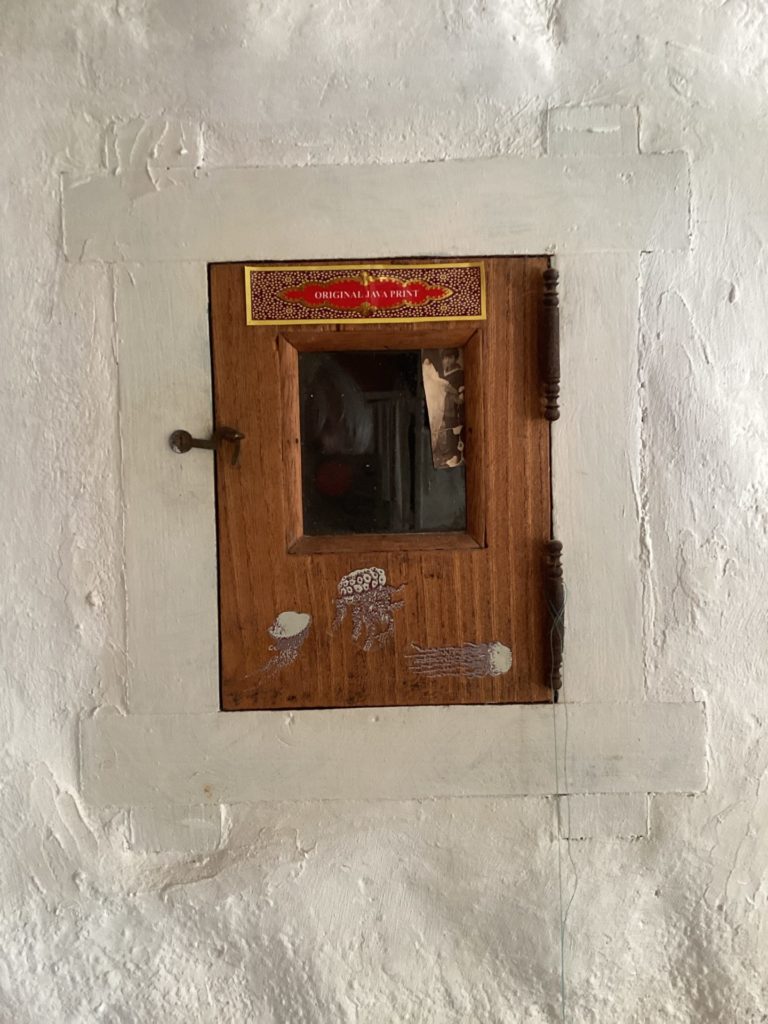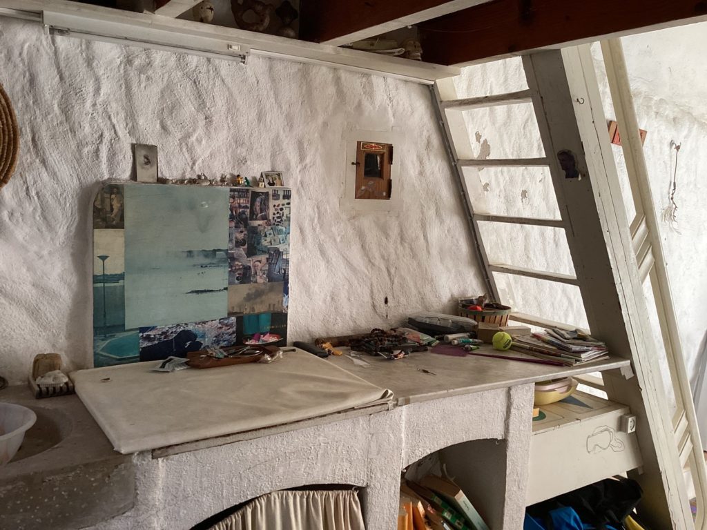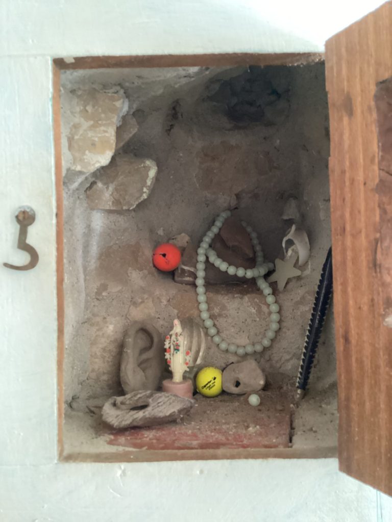 背後の石の壁をくりぬいた、レオによると「アニエスの秘密部屋」。なんか、大事なもんなんだろなこのいろいろ。子どものころからの、かな。なんだか素敵やな。