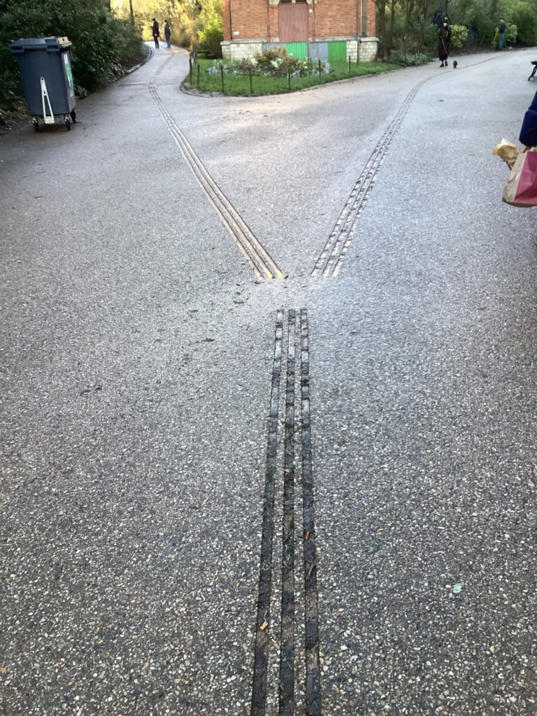 日本でいうたら点字ブロックだったみたい。黄色いシート貼るよりいいな。でもこの発想が日本では出てこんよな。