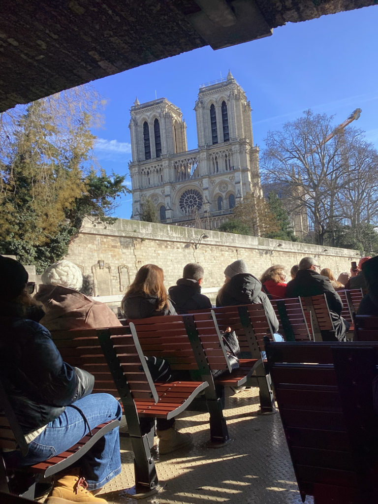 あの火事から、修理中のノートルダム。この後、橋を三本くぐってUターン。もう一本向こういってくれたら、コルビュジェ設計の舟「アジールフロッタン」(元は難民収容のための)が見えたかもー。ちょい残念。