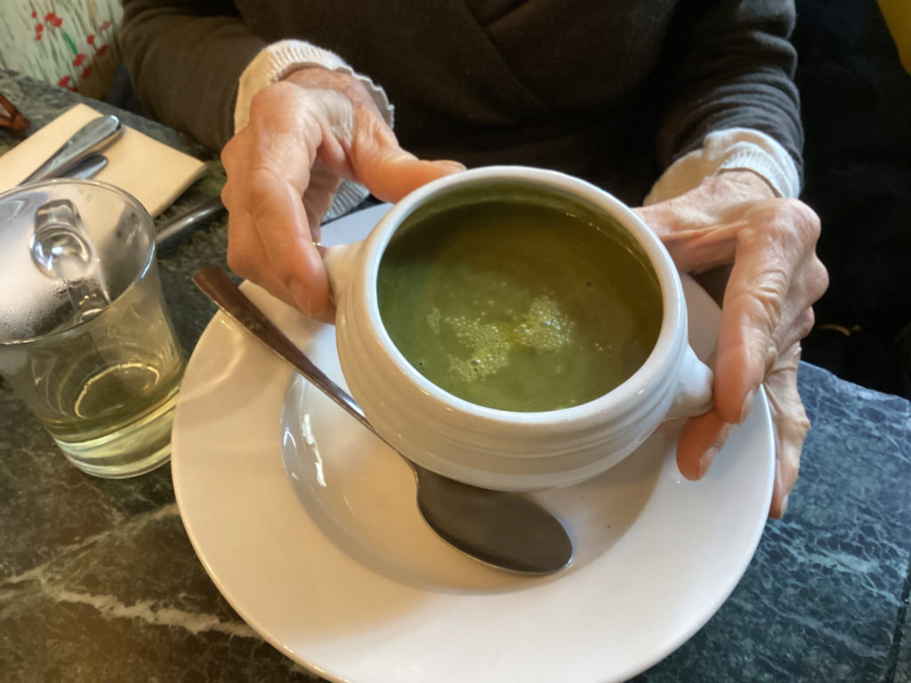 アニエスはスープ。に、パンのみ。あのスリムさの秘訣やな。