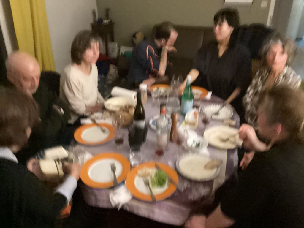 ボケてますが、9時前くらいから晩餐。上の階に住んでるミシェルの姪っ子ペレット(発音はもっと複雑)とそのパートナー、アレキサンダーも一緒に。彼はお酒通。めっちゃ詳しくて、自分の部屋には40本くらいお酒あるよって。