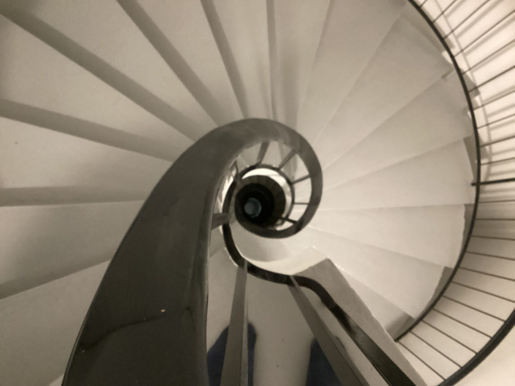 ミシェルのフラットの階段。どこ行っても階段が美しくて上り下りしやすい。法的寸法も大事やけど、見た目美しく、使いごこちがいいのがええよなやっぱり。