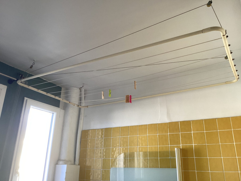 あと、わい的には、このシャワー室の物干し!いくつか複雑に滑車が組み合わされて、しゅーっと降りてきてしゅーっと上がる。もちろん手動やけど。これ研究してみたいな。おしゃれやしものすごく実用的ななあ。