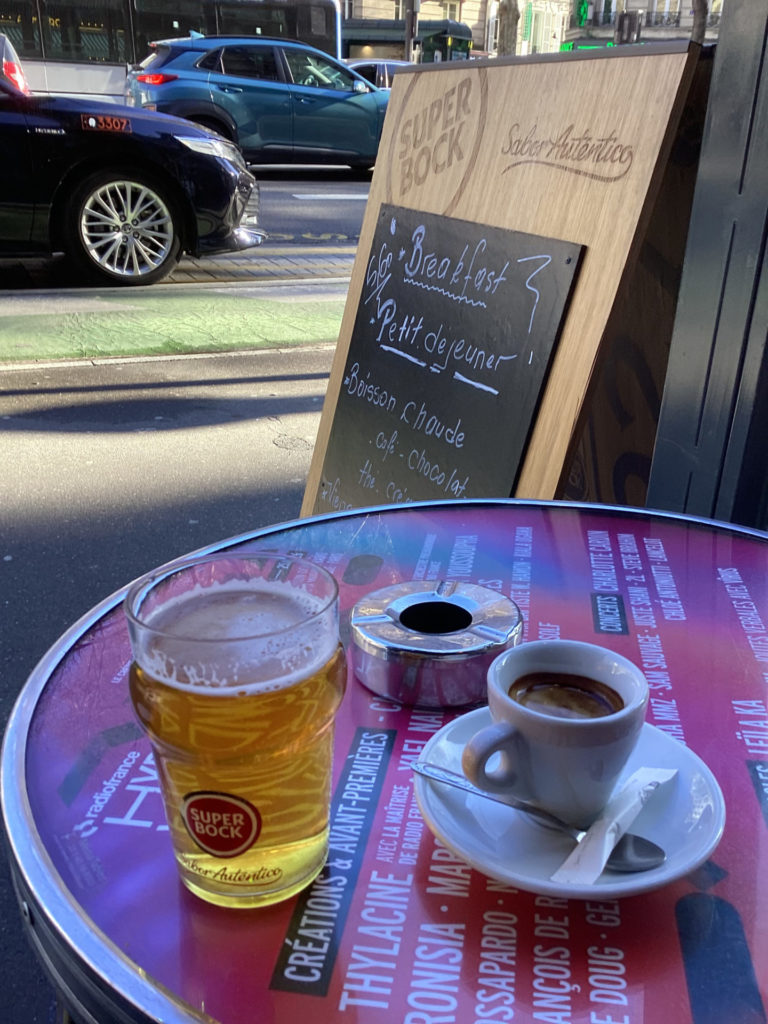 一旦マルセイユ帰る娘たちと別れて、家人とテラスカフェ。カウンターのタップにアレ見つけた!昨日の「1664」な。で、フランスに公衆トイレはない。あっても使わない。として、歩く時間との関係で、んまいタイミングでカフェに入るのが大事じょ笑 いやマジ!
