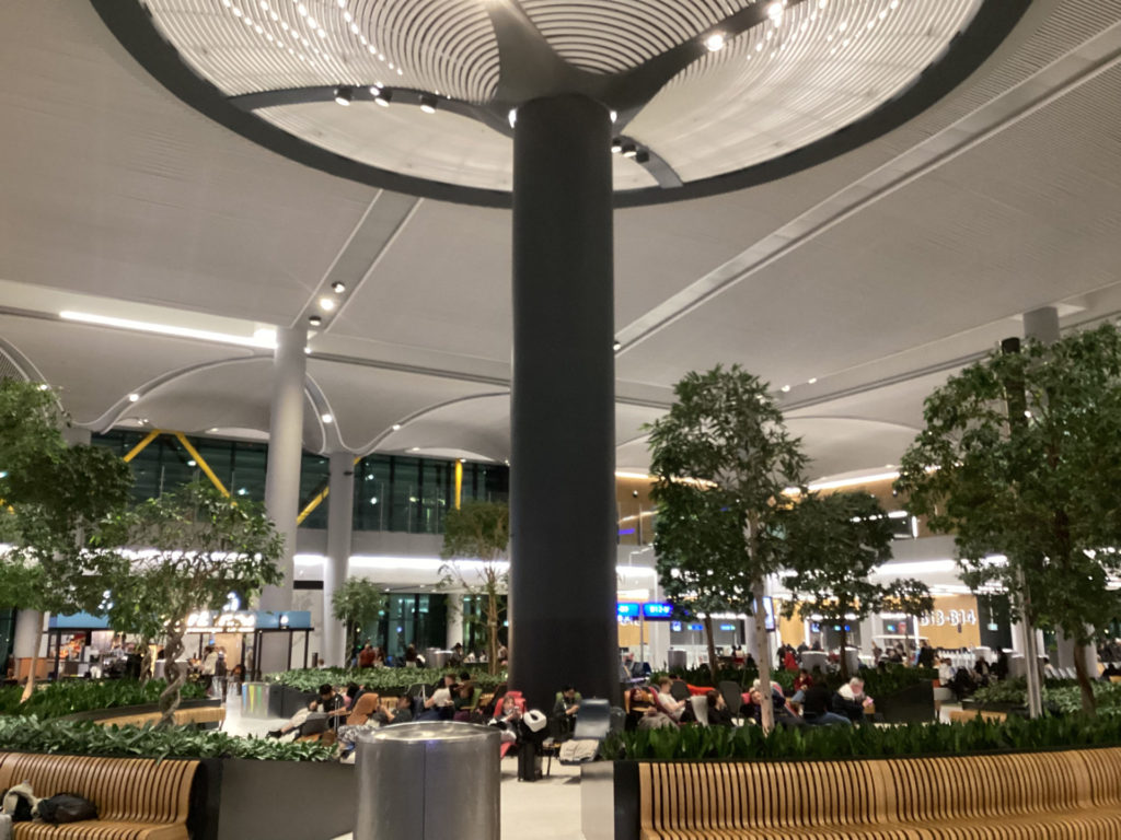 イスタンブールで3時間待ち。さすが世界のハブ空港。5分ごとに、何便も飛び立つ。ってことは、おんなしくらい着陸もするんよな。着陸してから降り場までの長かったこと。10分どころでなかったな。どんだけ広いん。ここはなんか樹の下な感じな、くつろぎ場所。安楽椅子もたくさんあって。イスラム色のある地域やからアルコールはないんかなーおもいよったけど。ちゃんとありました。