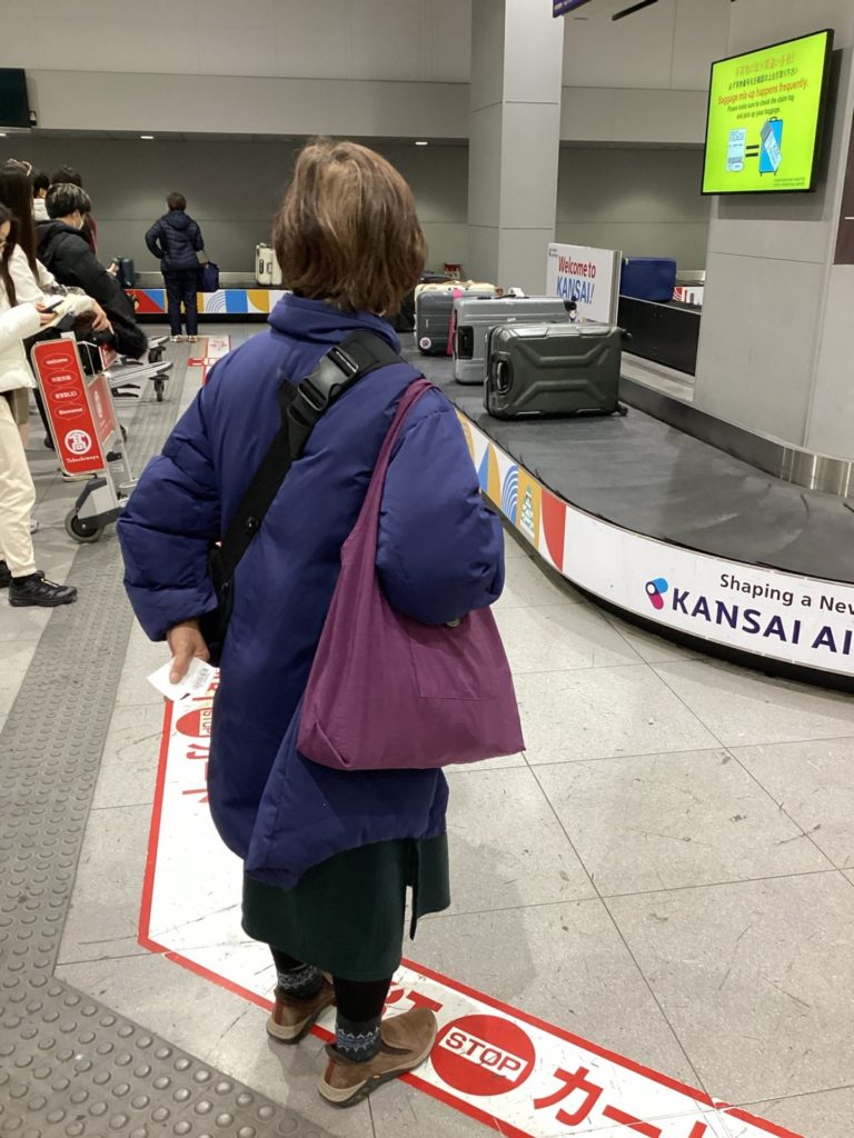 荷物待ちの家人。手続きも終わって、行きしなと同じ南海特急ラピートに乗って、「はあー」いいながら座りながら、わいのiPadがないことに気が付く・・・。うわー!!どこだろ、券売機?オフィスで聞いても届いてませんと。家人が、「入国の申告書かいたとこちゃう?」て。夜遅いしインフォメーションには人おらんし。荷物預かりで尋ねたら、税関へ行ってみて下さいーと。たどり着いて聞いてみたら、「ちょっとそこにおかけになってお待ちください。」から、ほどなく、「カバーついてますね?」「はいはい、薄いグレーの」「取りに行ってきますので、もうしばらくそこにおかけになってお待ちください」「はい!」ほどなく「これですねー?」って。ああ。ジャパン ザ グレート。まるでゴム紐付けてあったみたいにしゅーっともんてきたじょ。安心して難波行って、バス乗って、12時過ぎに徳島駅に着きました。また行きたいなー・・・思っててもすぐ日常に取り込まれてまうんやけど、残り時間ほないないし、また行きたいな。お読みくださった方、長らくお付き合いくださいまして、ありがとうございました!!