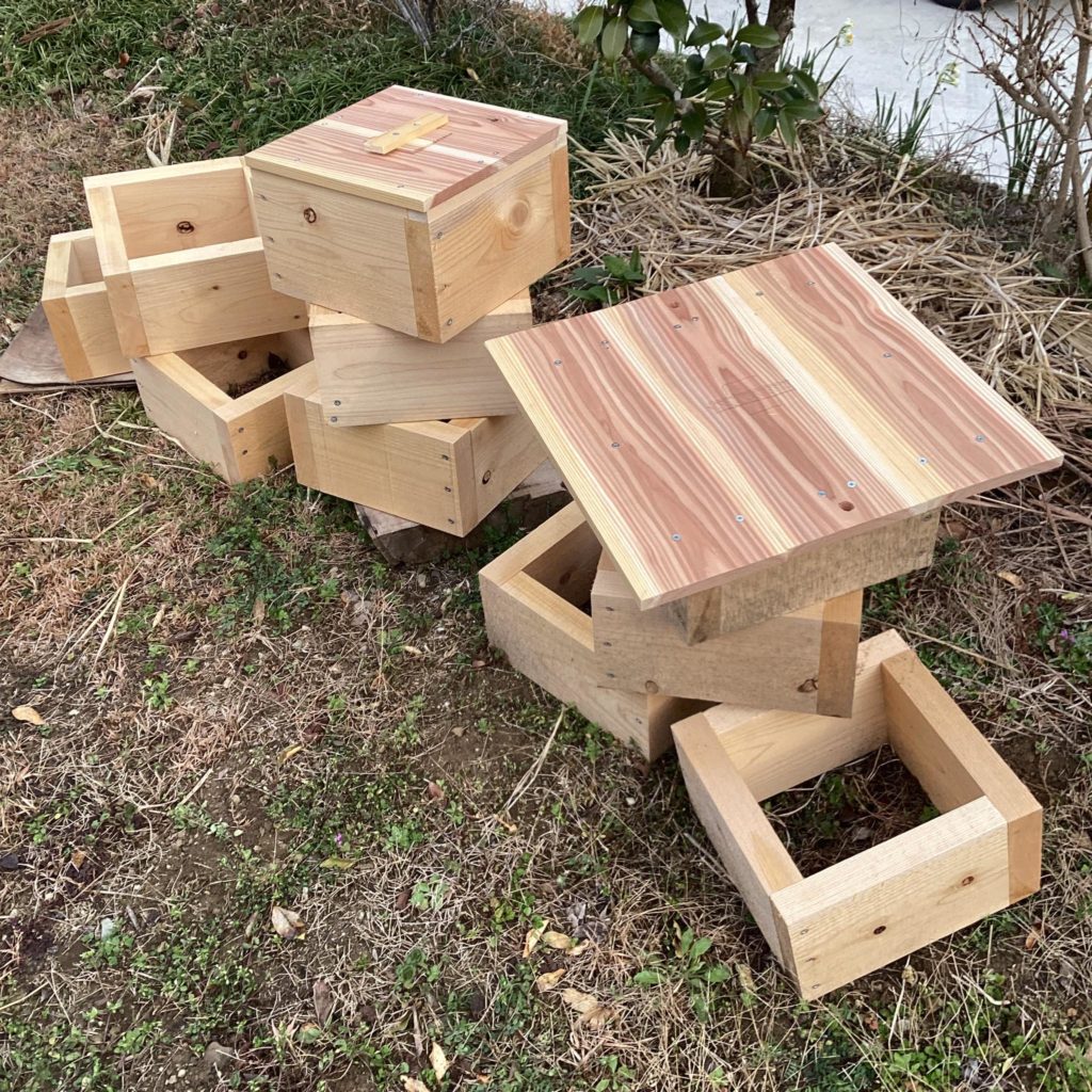 計画中の集合住宅のモデル。には違いない笑。いや、モデルじゃなくて実物じゃ。中間各階に続いて、エントランス階、最上特別階、屋根もほぼできて野晒し中。グラウンドレベルの鉄骨階が搬入されたら、五層積み上げて竣工やな。今期分蜂予定の二ホンミツバチのみなさん、乞うご期待!