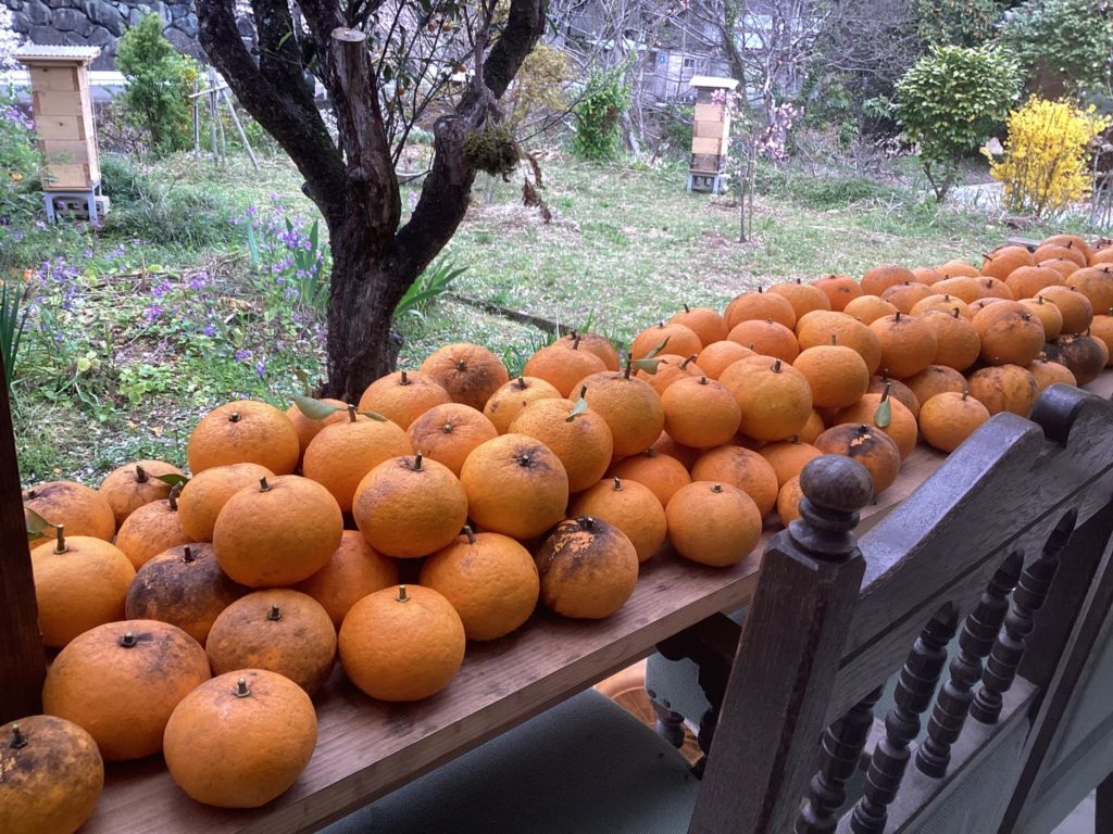 春の嵐の前の、「さななや農園」甘夏収穫。二百数十個。ジューシー。