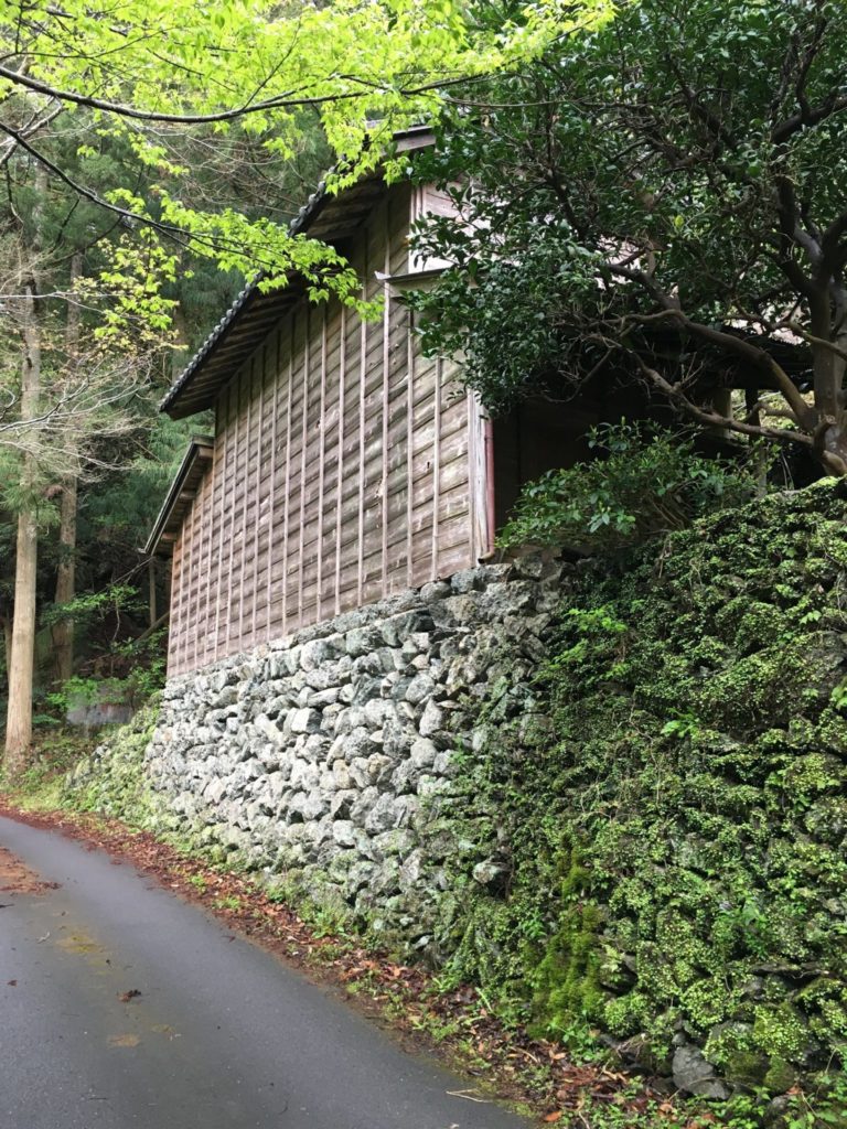 青石石垣の上に建つみかん小屋も美しいな。今、とあるみかん小屋をサウナに改修中。